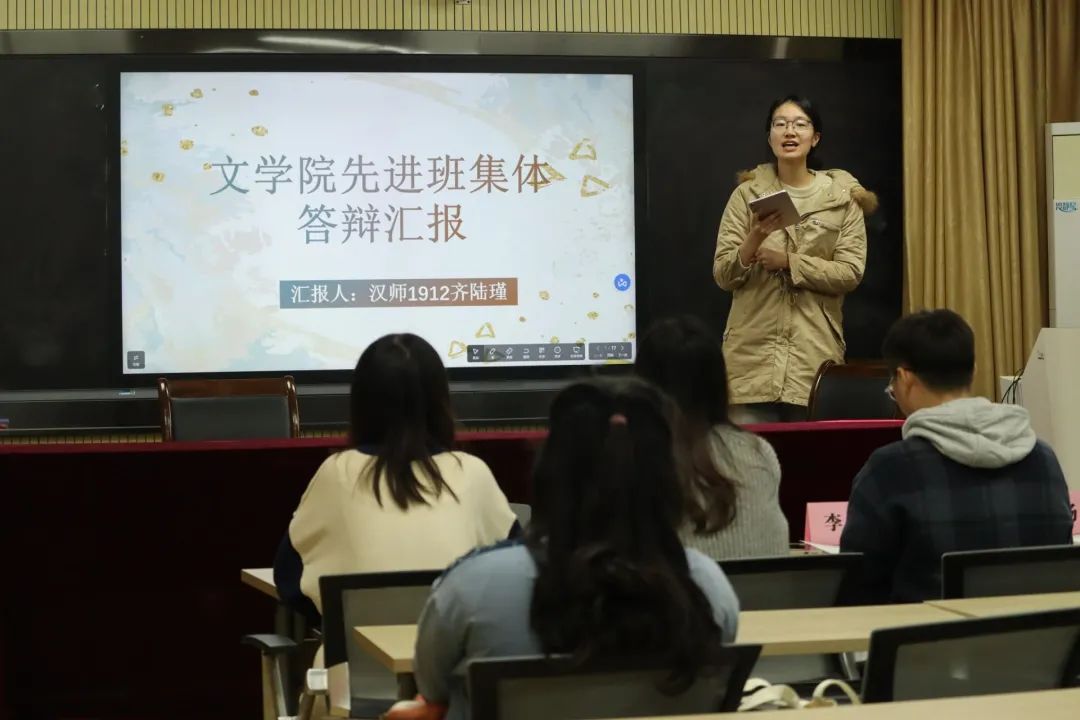 11月24日下午,欢迎光临888集团于教五103开展了以“争创先进班集体,共建良好学风校园”为主题的优良学风班评比答辩活动。欢迎光临888集团辅导员夏雨希老师、李洋老师,团委副书记刘燕洁,学生会主席沈悦杨担任本次答辩评委,参加本次评比答辩的班级分别是汉师1911、汉师1912、汉语1911、汉语1912、广电1912、汉师2012。
