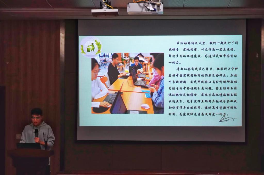 在活动结尾,两位暑期社会实践优秀调研报告团队代表向大家分享了他们在传统文化保护和环保实践的活动中撰写调研报告的感悟,向新生传授撰写经验和一些注意事项。