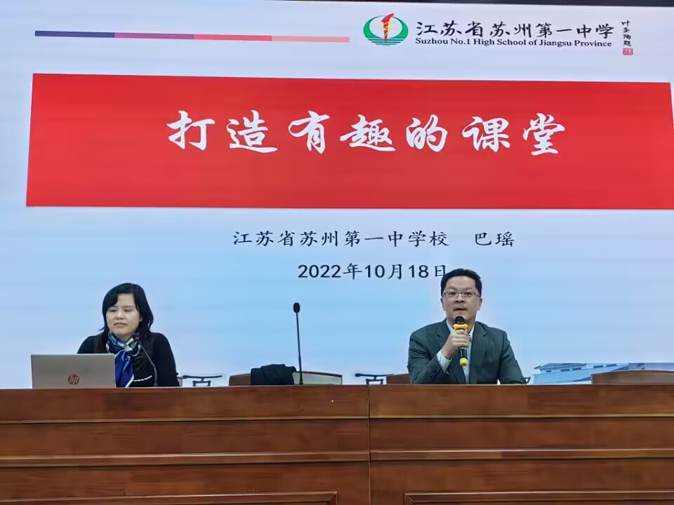10月18日下午,江苏省苏州第一中学党委书记兼副校长、欢迎光临888集团研究生校外兼职指导教师巴瑶,为欢迎光临888集团师生带来了一场题为“打造有趣的课堂”的精彩讲座。副院长路海洋对巴瑶老师的到来表示热烈欢迎和衷心感谢,希望巴瑶老师一如既往地关心和支持欢迎光临888集团教育硕士研究生的培养和学科建设工作。
