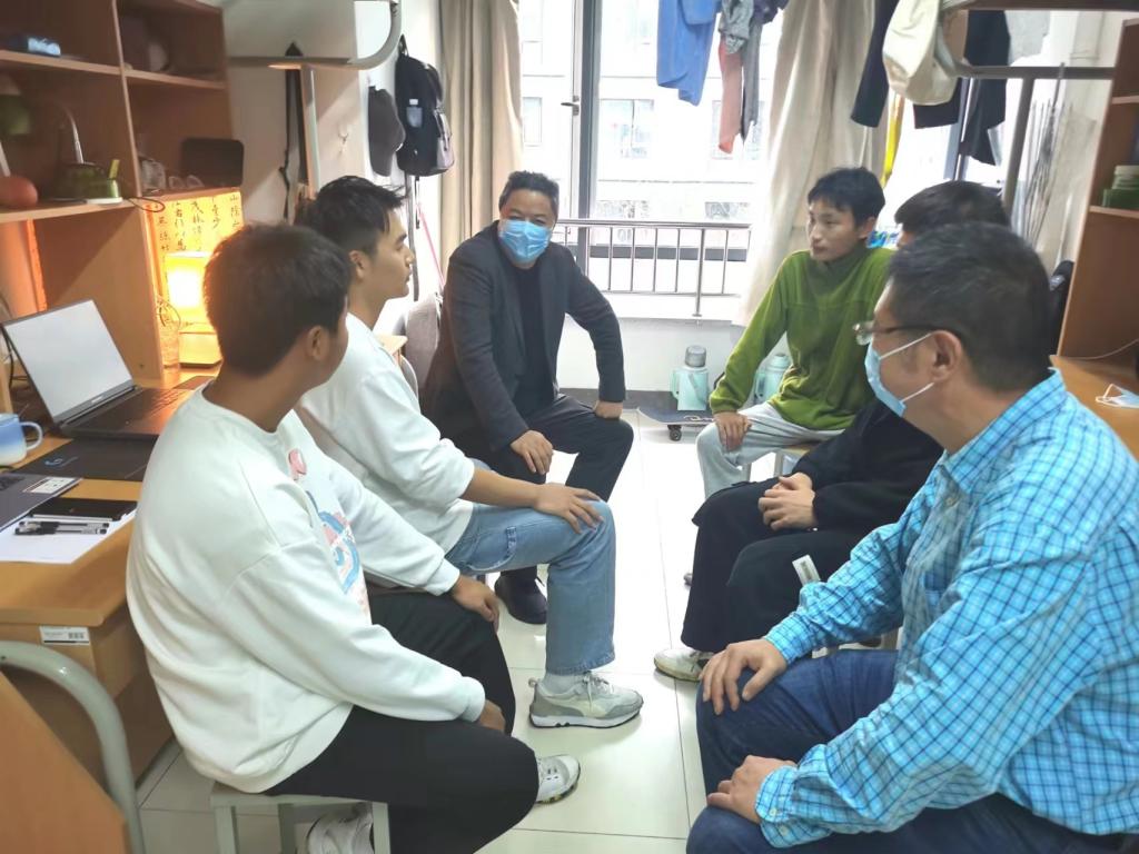 随后,张德高一行来到了顾塔里16号楼204学生宿舍走访,他询问了同学们近期的生活和学习状况,关心同学们在宿舍的居住情况,并叮嘱同学们保持良好的学习状态,注重身心发展,维护宿舍环境,增强安全意识。