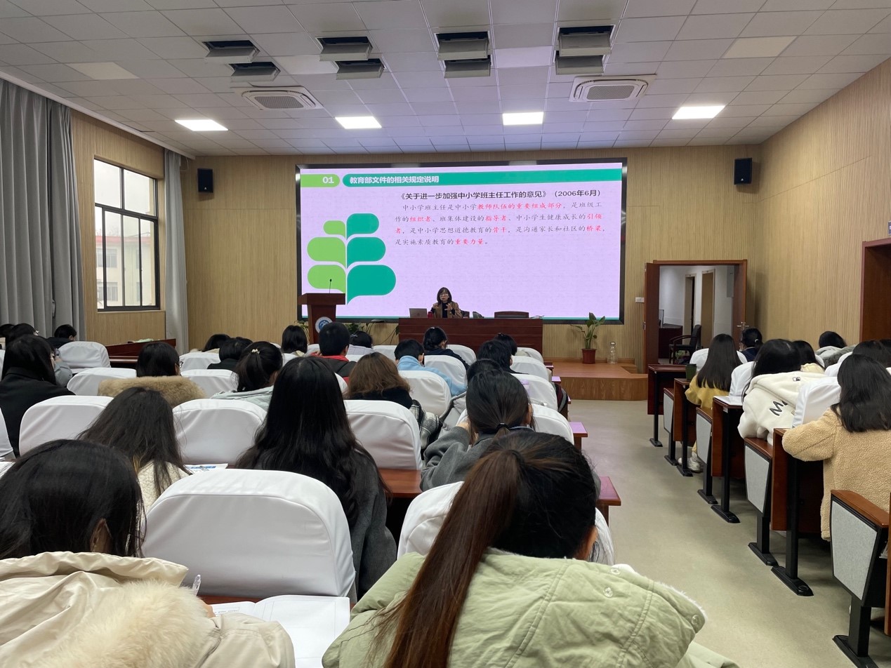 12月9日上午,苏州新区枫桥实验小学校长顾卫红在五教三楼报告厅做了题为“积极心理学视域下班主任的关键能力和必备品格”的讲座。副院长孙虎主持讲座,并代表学院向顾卫红颁发了兼职导师聘书,中文系主任朱鹏杰和汉语言文学师范专业90余名同学参加了活动。