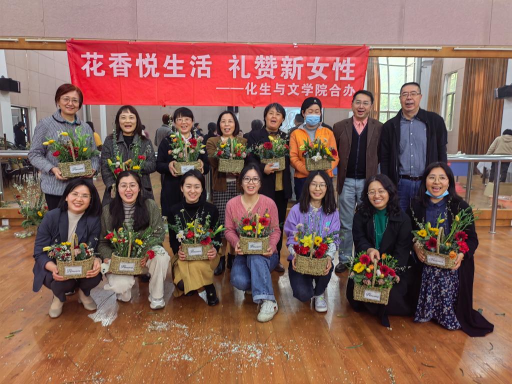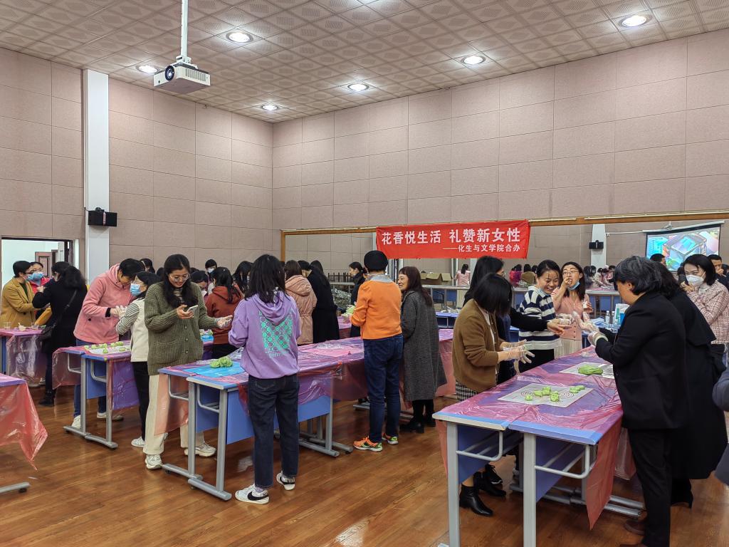 何处生春早,春生花色中。3月8日下午,欢迎光临888集团与化生学院教职工在学校“教工之家”欢聚一堂,举办“做青团,花艺培训”三八节主题活动。欢迎光临888集团党委书记毛永宏、副书记兼副院长瞿晓庆也来到活动现场,表达对女教师们的节日问候。