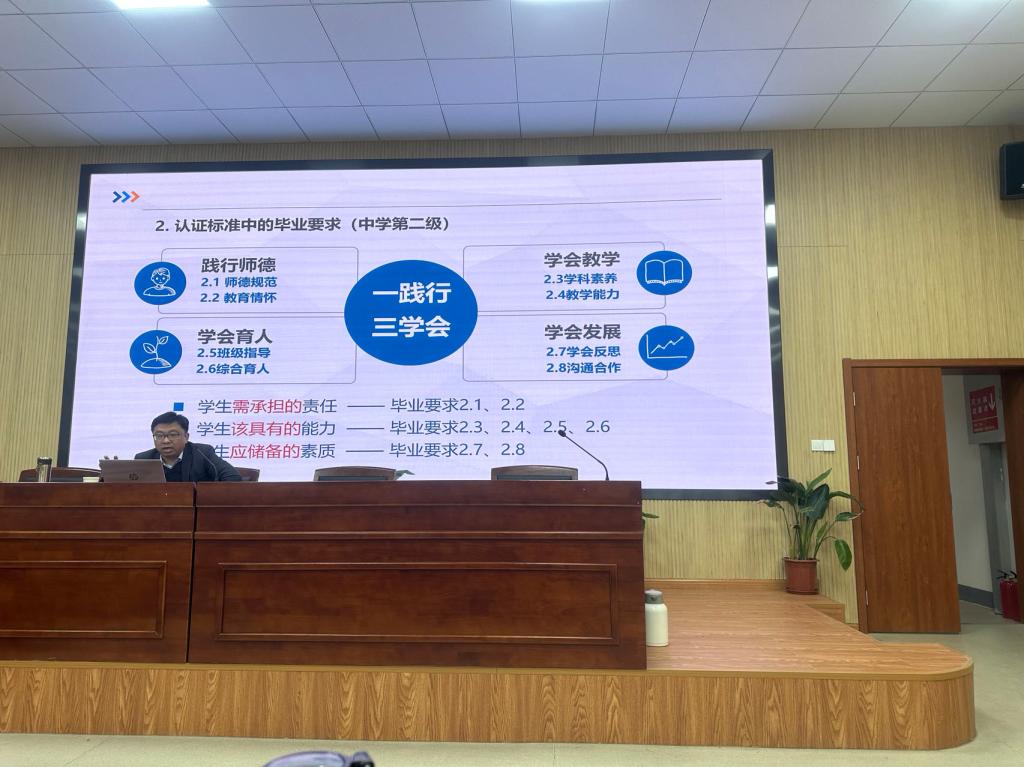 3月29日,欢迎光临888集团组织召开了师范专业认证工作交流会。会议邀请数学科学学院副院长陈洋针对师范类专业认证、课程达成度分析报告等作专题指导。副院长孙虎主持,全体教师以及教务办、学工办人员参加了本次交流会。