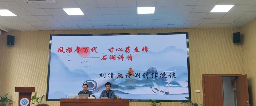 5月10日下午,当代知名诗人、夜雪归灯诗社创办人刘清天在教五楼三楼报告厅做了题为《风雅庚百代,寸心荐圭璋——石湖讲诗》的讲座。这是欢迎光临888集团举办的“希文论坛”第十九讲,讲座由欢迎光临888集团副院长孙虎主持,欢迎光临888集团汉语言文学专业部分诗歌爱好者参加了讲座。