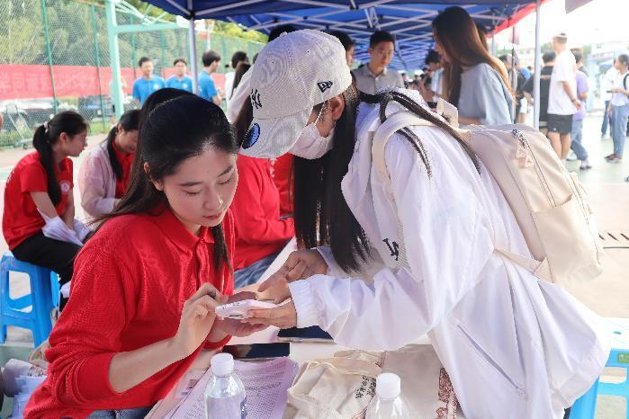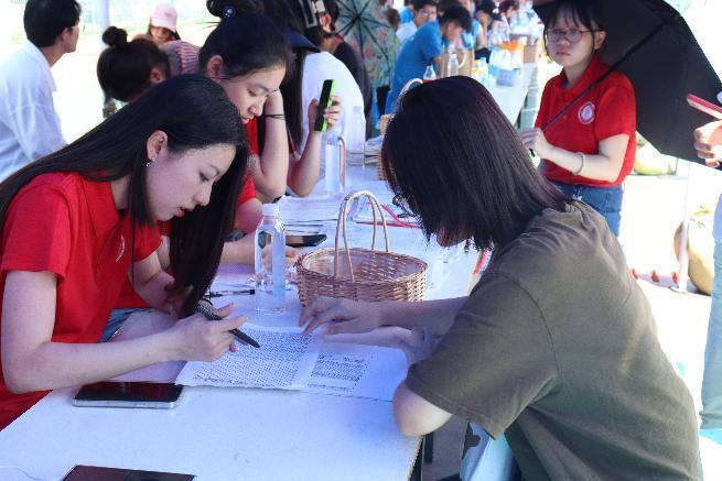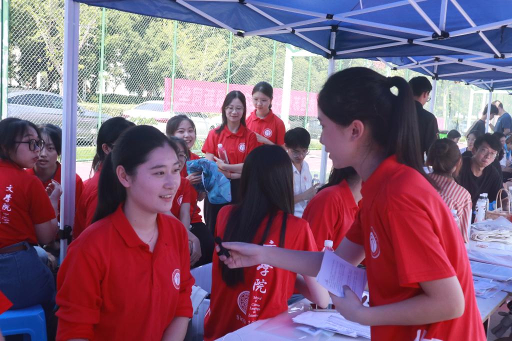 在888集团的校园里,随处可见身着欢迎光临888集团院服的志愿者,他们早早来到欢迎光临888集团的迎新帐篷前,整装待发,带领新生及家长熟悉入学流程,给新生分发包含印有欢迎光临888集团logo的帆布袋、校园一卡通和心理健康咨询卡等在内的入学大礼包,为新生指示道路、搬运行李。志愿者们来回奔波,构成了迎新现场最耀眼的那一抹“文院红”。