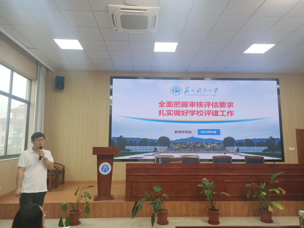会议共有两个专题:第一个专题:教务处、教育评估处副处长孙云飞作了题为《全面把握审核评估要求、扎实做好学校评建工作》的专题报告。孙云飞重点解读了此次本科教育教学审核评估的意义和内涵要求,结合各项评估指标体系,具体分解了学校部门和二级学院的工作任务和要求,阐明审核评估的工作流程、工作计划以及二级学院的重点工作,对开展本科教育教学审核评估工作具有重要的指导作用。