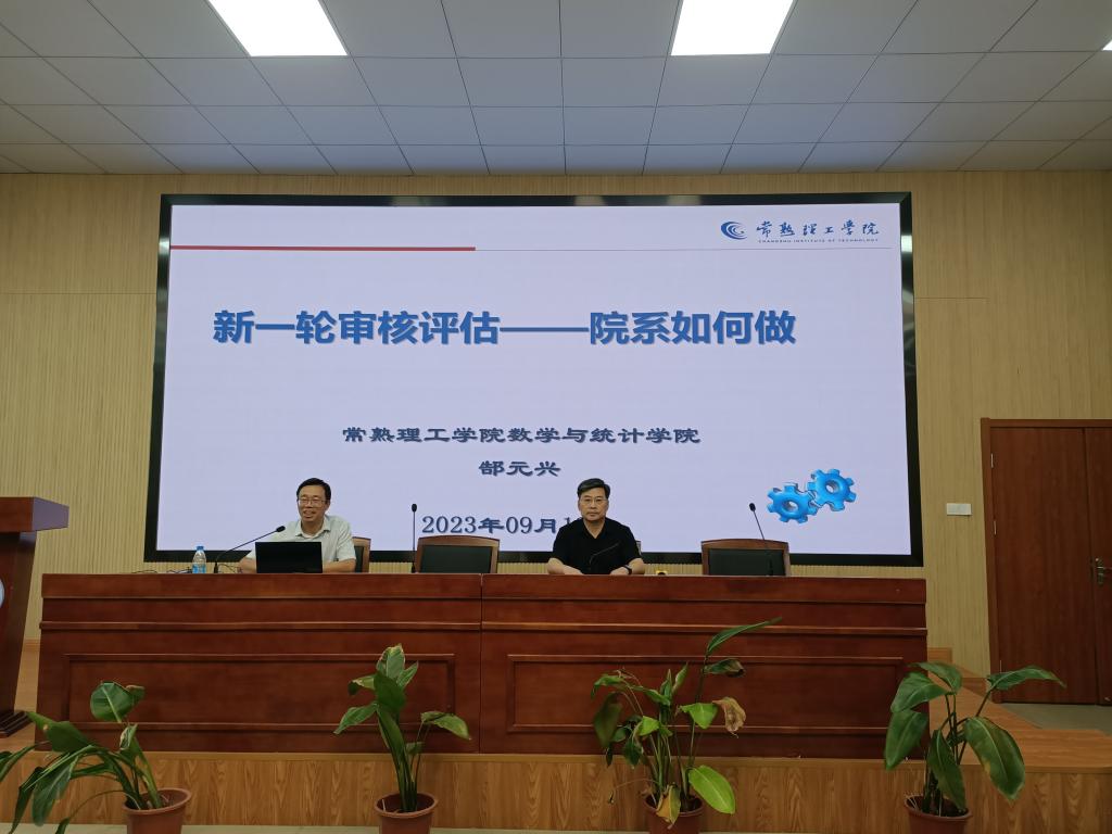 第二个专题:会议特邀常熟理工学院数学与统计学院副院长郜元兴教授作题为《新一轮审核评估——院系如何做》的专题报告。郜元兴从新一轮审核评估的背景与特点出发,具体阐述了本次审核评估的理念、评估内容与核心指标,分享了常熟理工学院在评估中的经验做法,对学院评估工作有重要的启示。