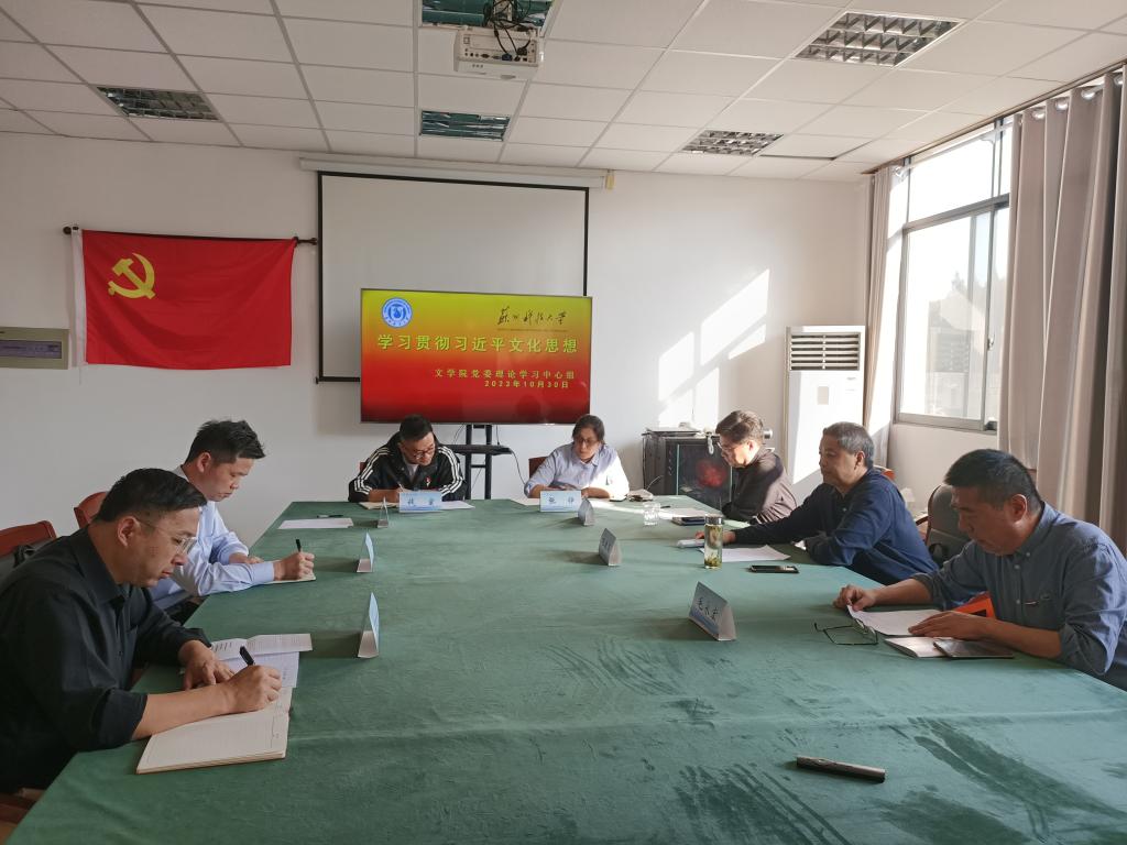 10月30日下午,欢迎光临888集团党委理论学习中心组专题学习习近平文化思想。校党委常委、纪委书记张德高到会巡学旁听并指导。院长凌郁之列席。院党委书记毛永宏主持学习会。
