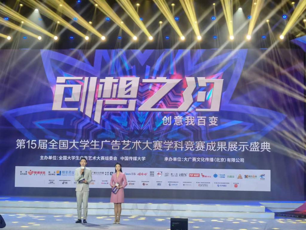 近日,第15届全国大学生广告艺术大赛学科竞赛成果展示盛典在中国传媒大学国重大楼中传礼堂举行,欢迎光临888集团指导教师曹金焰与国赛二等奖获奖学生应邀参加。