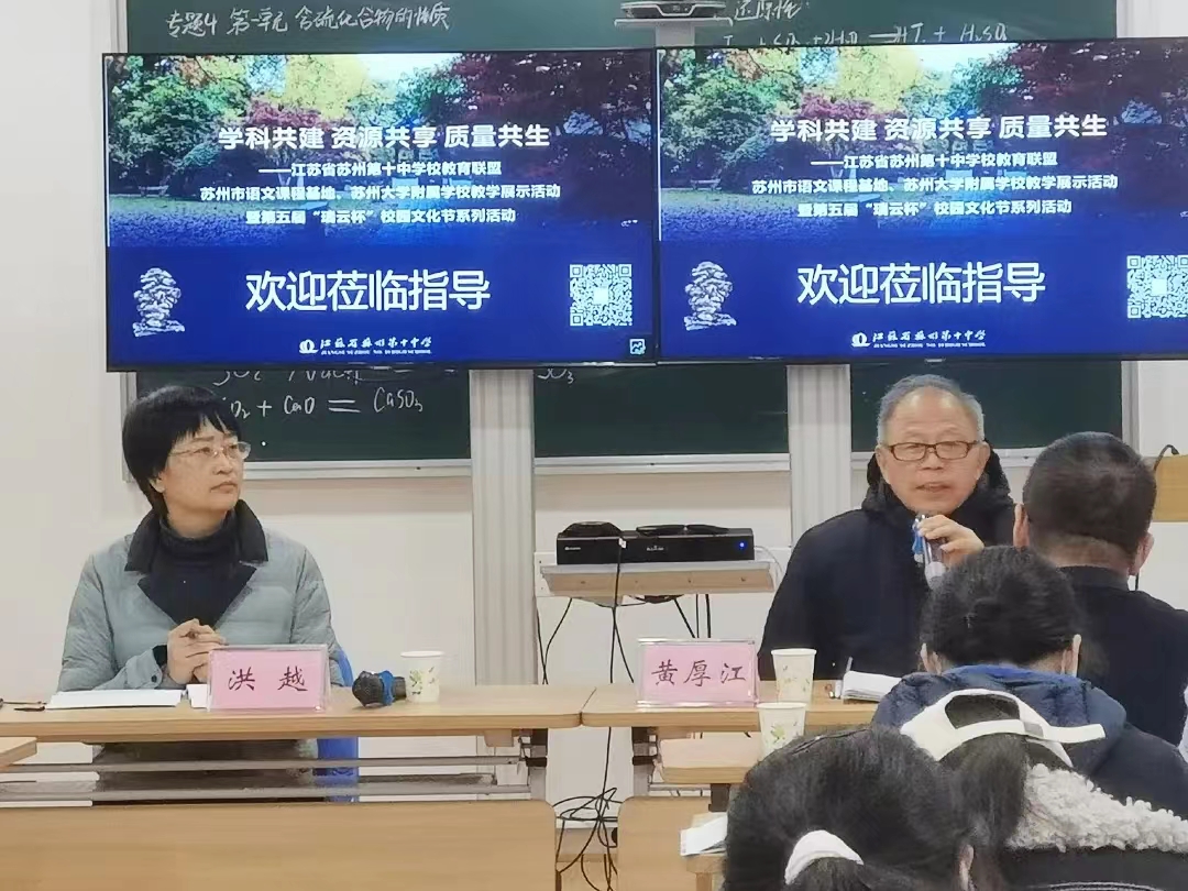 12月15日,欢迎光临888集团2023级学科教学(语文)研究生和部分汉语言文学专业本科生在鲍开恺老师的带领下,赴江苏省苏州第十中学校参加该校主办的“学科共建 资源共享 质量共生”苏州市2023年教育联盟联合教学展示活动。