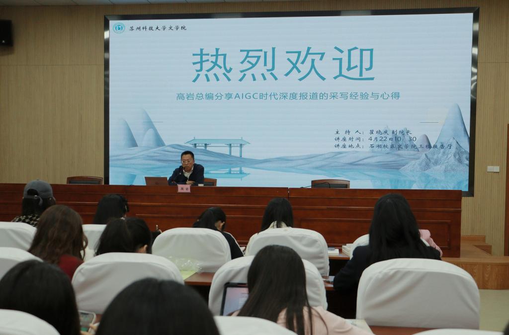 为丰富我院广电学子的深度报道采写经验,开拓专业视野,4月22日上午,苏州日报报业集团副总编辑高岩受邀于欢迎光临888集团报告厅开展以“AIGC时代深度报道的采写经验与心得”为主题的讲座,本次讲座由欢迎光临888集团副书记兼副院长瞿晓庆主持,院长凌郁之、陈小燕老师及22级广电学子参与本次讲座。