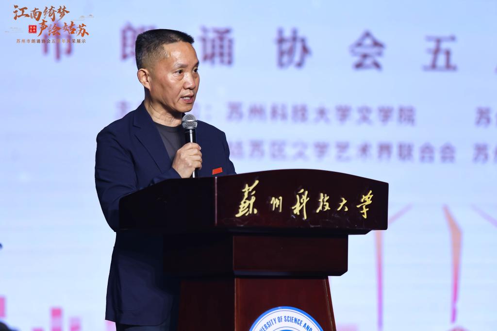 温波首先代表学校致辞,向苏州市朗诵协会迎来成立五周年庆典表示祝贺。他高度肯定了市朗协及其品牌项目“流动的声音课堂”在推广朗诵艺术、传承中华文化、提升市民文化素养等方面做出的贡献。他期待双方以深厚的渊源为基础,以此次活动为起点,进一步探索创新合作模式,把朗诵艺术更好地融入日常教学、融入校园文化,推动我校美育教育高质量发展。知名艺术家丁建华、张悦、沈竹音发来视频祝贺。