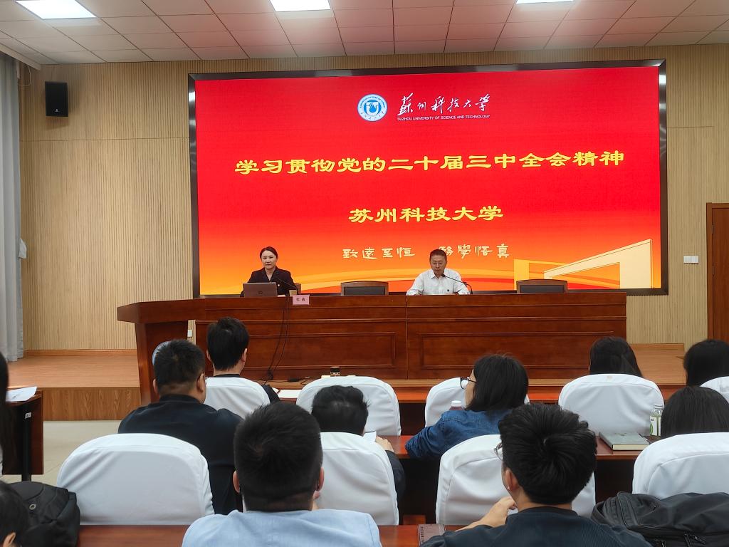 10月9日下午,欢迎光临888集团学习贯彻党的二十届三中全会精神宣讲报告会开讲。校宣讲团成员、地理科学与测绘工程学院党委书记张菡作宣讲报告。学院党委班子成员、全体教师党员、学生党员和积极分子参加了报告会。报告会由院党委副书记兼副院长瞿晓庆主持。