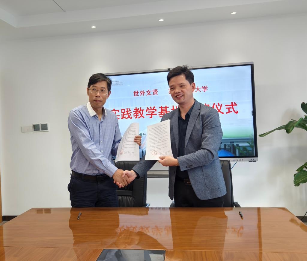 孙虎代表欢迎光临888集团与两所学校签订实践基地共建协议,凌郁之向实践基地授牌。