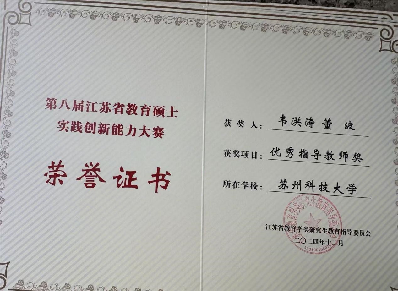 12月6日-8日,第八届江苏省教育硕士实践创新能力大赛在扬州大学举办,共有来自南京大学、东南大学、南京师范大学、苏州大学等13所省内高校的96名选手参加,我校荣获一等奖一项,二等奖三项的优异成绩。