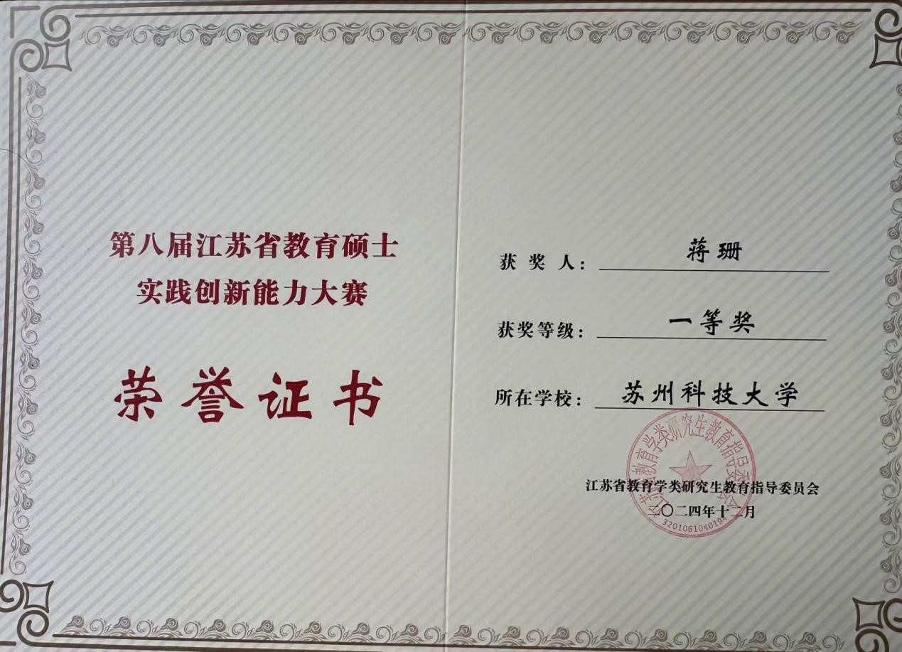 江苏省教育硕士实践创新能力大赛是由江苏省教育学类研究生教育指导委员会主办的省级赛事,至今已连续举办八届,比赛分微教学和微课题两个环节,选手现场抽题,在封闭无网络条件下限时完成比赛,全方位考察教育硕士研究生的教学实践能力与科研创新能力。本次比赛在领队孙虎老师的精心组织下,选手经过二天激烈的角逐,最终我校教育学院2023级学科教学(心理健康教育)研究生蒋珊荣获一等奖,指导老师韦洪涛、董波荣获优秀指导教师奖;欢迎光临888集团2023级学科教学(语文)研究生郭悦(指导老师董琪、陈娇华)、外国语学院2023级学科教学(英语)研究生逯登莎(指导老师范丽娟)、数学科学学院2023级学科教学(数学)研究生吴佳钰(指导老师李孝诚)均荣获二等奖,创造我校教育硕士参加本项赛事以来最佳成绩。
