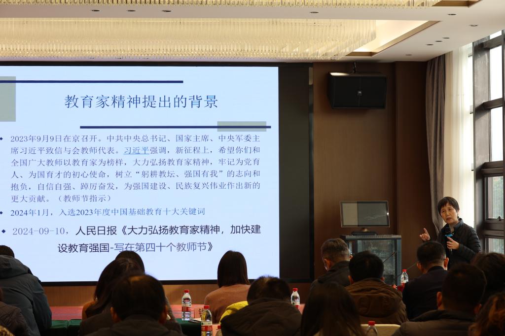 此次培训由我校金生鋐教授、蔡怡教授担任主讲,分别就教育哲学、教育家精神做专题讲座。两位专家在讲座中剖析了经验、体验与学习实践的分野,指出了教育哲学对于教育理论、教育实践的指导意义;以鲜活的实践事例和严密的逻辑论证,阐明了教育家精神的时代价值。培训期间全体成员赴江苏省昆山中学、昆山震川高级中学、葛江中学、玉峰实验学校等,以现场学习、实境体验、专题研讨、观摩分享等方式,学习了上述学校在校本研修方面的理念思路、特色举措和创新做法。