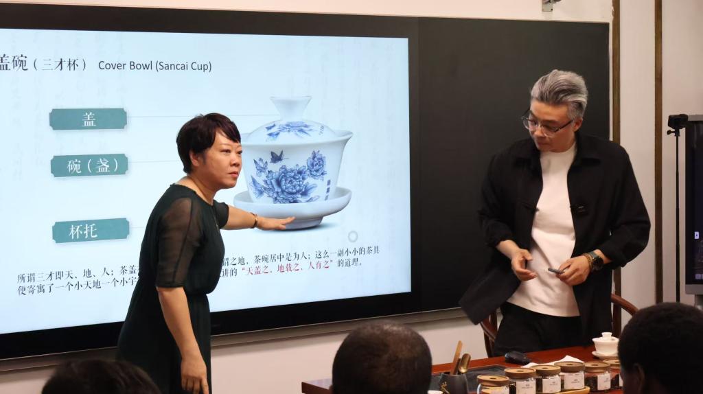 赵瑾对到场嘉宾和留学生表示热烈欢迎,孙虎向李轶先生授予欢迎光临888集团兼职导师聘书。李轶以生动的语言和丰富的图片资料,带领留学生们穿越时空,领略中国茶文化的千年魅力。他从唐朝的煎茶、宋朝的点茶,到明清的泡茶,详细讲解了中国茶文化的历史沿革,并分享茶礼、茶道和茶文化的传承等。讲解过程中,留学生们积极互动交流,现场气氛热烈融洽。在"春日品茗"环节,大家见证了一壶清茶的诞生。在碧螺春茶的清香中,留学生们细细品味茶香余韵,感受中国茶文化的独特魅力,并分享了本国饮食文化等。
