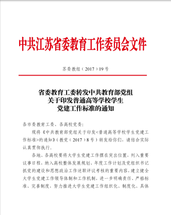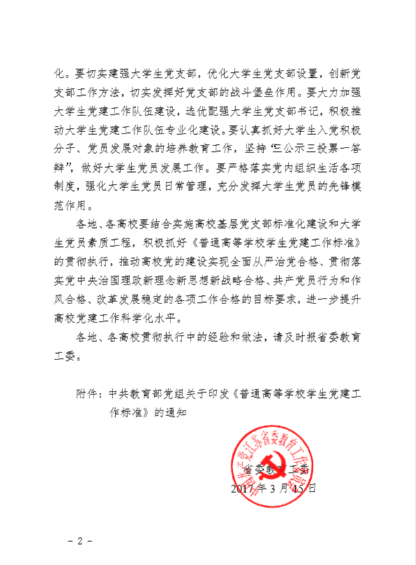 省委教育工委关于转发中共教育部党组印发普通高等学校学生党建工作标准的通知