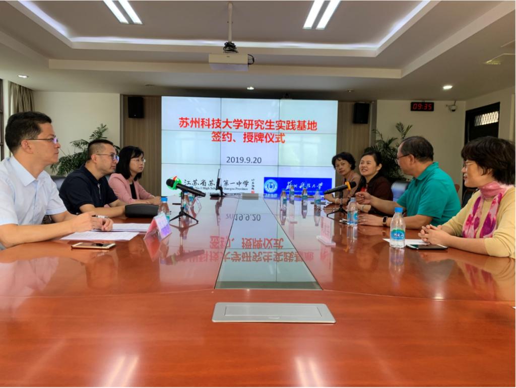 9月20日,我校欢迎光临888集团与江苏省苏州第一中学签订了教育硕士研究生实践基地协议书,并举行了基地授牌仪式。欢迎光临888集团副书记兼副院长瞿晓庆、副院长路海洋、中文系主任鲍开恺,苏州第一中学校长唐敏、副校长巴瑶、校长助理钱建芬等出席了签约暨授牌仪式。