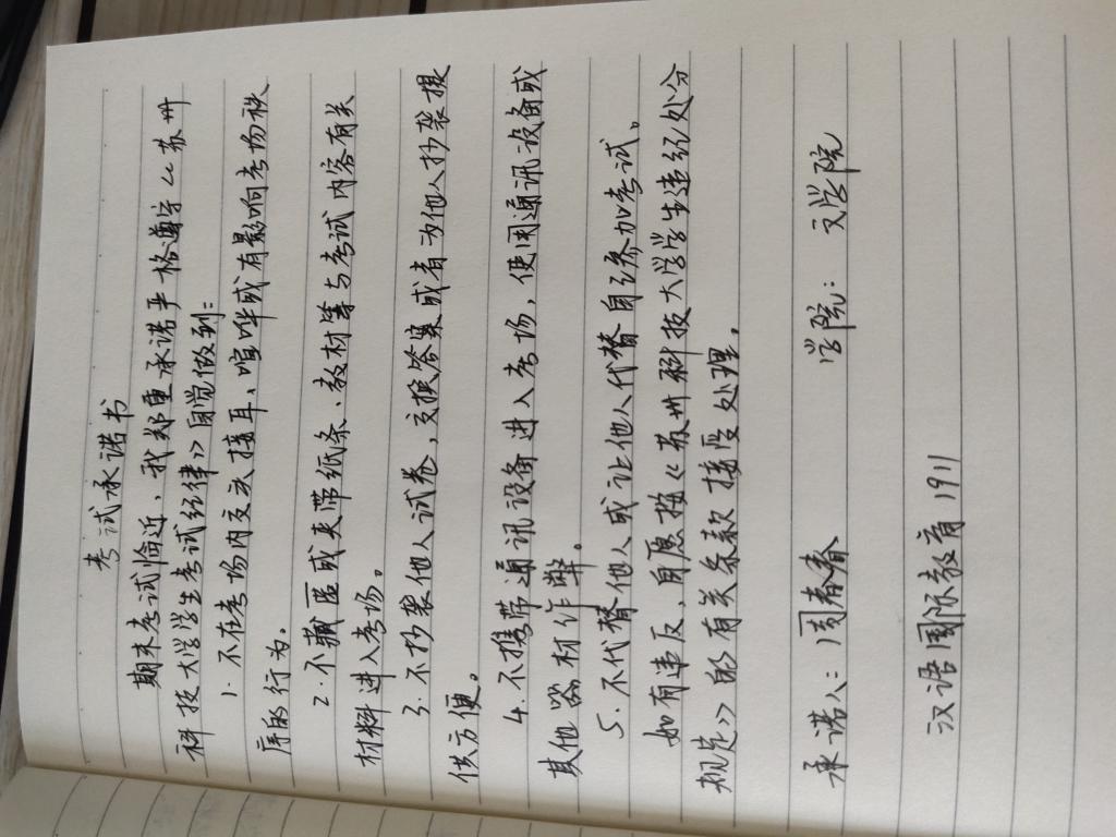 会议指出,遵守考场纪律和考场守则是诚信考试教育的重中之重,要引导学生树立自我管理能力,加强思想道德建设,将立德树人的思政要求落实到诚信考试教育中去。孙老师通过三个纪律处分典型案例,强调考试作弊的严重后果,明确学校对于此类事件的零容忍态度,警示学生以此为戒。会后,每位延考学生都认真阅读并誊抄《诚信考试承诺书》,进一步将“求真力行,从我做起”的理念贯彻到底。
