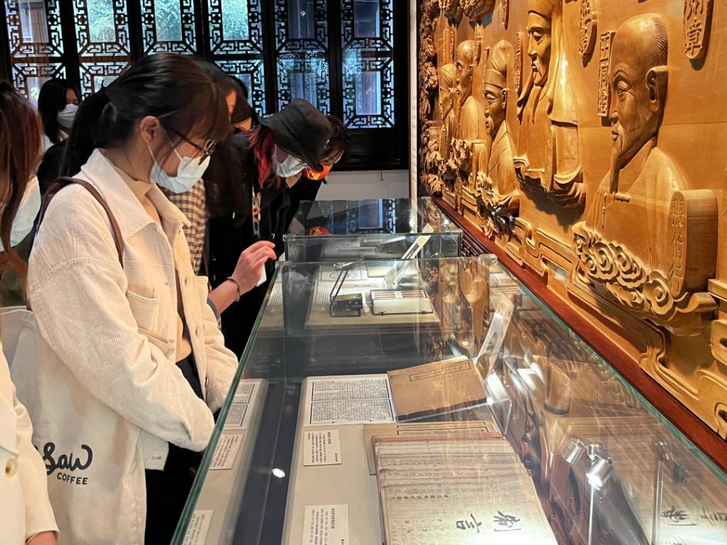 苏州教育博物馆共分为四个展厅。跟随讲解员的引导,同学们首先来到了名人馆。在名人馆的东西两墙,展示了古往今来苏州教育名家的木刻碑像。范仲淹、叶圣陶等先辈们高风亮节的人格和教育思想,为后世师范生树立了典范,也让同学们从中感悟到姑苏历代师表“为天地立心,为生民立命,为往圣继绝学,为万世开太平”的崇高思想理念。