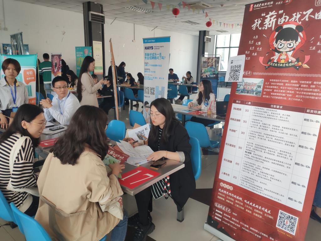 本次招聘会共到场企业41家,涵盖教育、商业服务业、房地产业等多种行业,提供职位数一千余个。学院领导对本次招聘会给予高度重视,院系就业指导老师来到现场与学生进行亲切交流,为他们答疑解惑,让学生了解自己并找到适合自己的岗位。