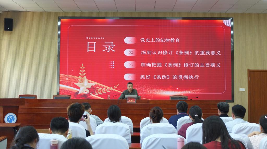 张德高以党史上的纪律教育为线索,详细解读最新的《中国共产党纪律处分条例》修订情况。通过近年来全国多起党员干部违反纪律处分条例的典型案例,深刻阐述了在全党严明纪法教育重要性。强调,作为党员,必须持续深入学习并坚决贯彻党的纪律条例,与党的建设和自我革命紧密结合,增强党员干部的纪律观念和规矩意识,在全校营造风清气正干事创业的良好政治生态。