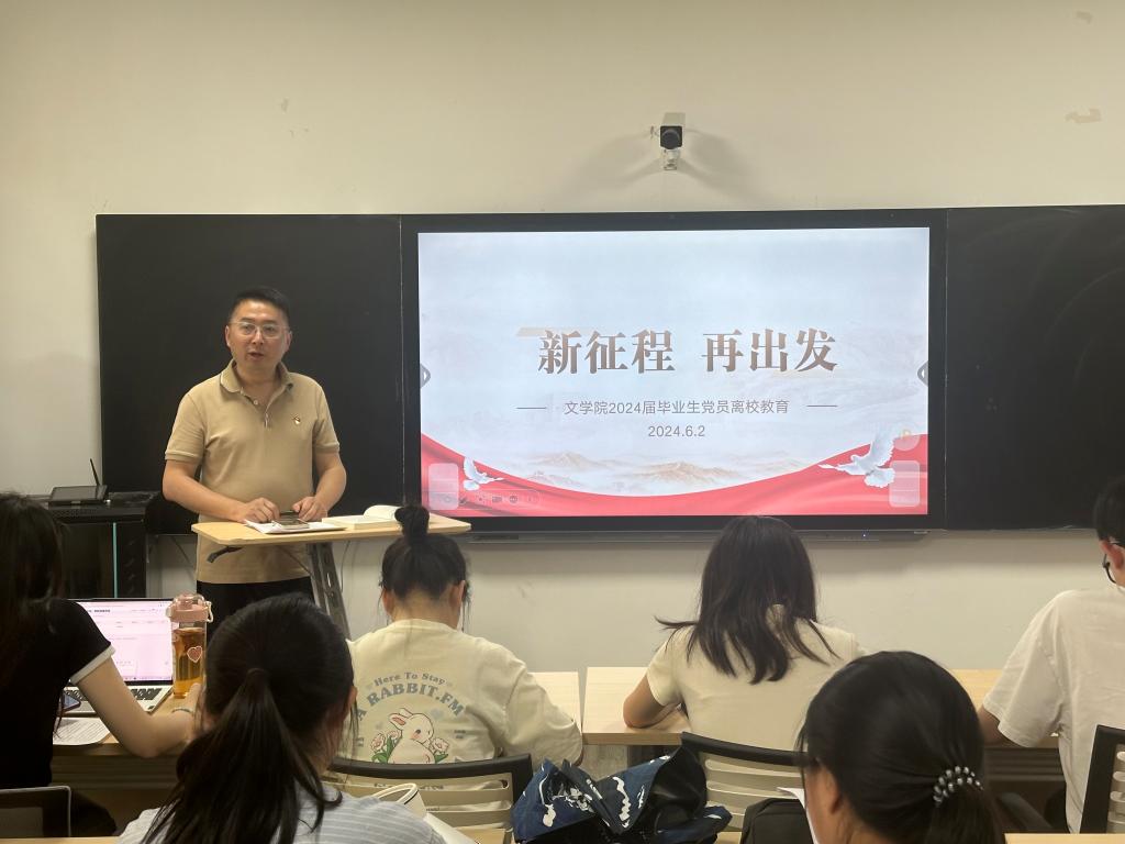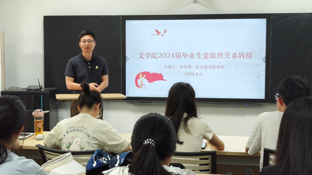 近日,欢迎光临888集团召开2024届毕业生党员离校教育暨党纪专题教育学习会。欢迎光临888集团党委副书记、副院长瞿晓庆、欢迎光临888集团党建组织员李洋与2024届29名毕业生党员到会。会议由李洋主持。