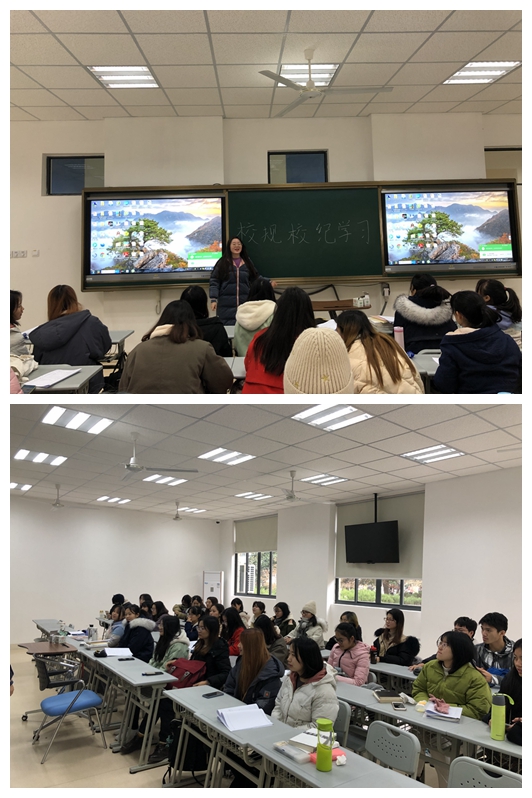 为进一步加强学生思想教育和行为管理,提高自律和安全防范意识,不断提高学生文明素养,建设良好的校风学风,20191220日,汉语国际教育1811班在教4-110召开“学习校规校纪”主题班会。班会由班长朱珊主持。