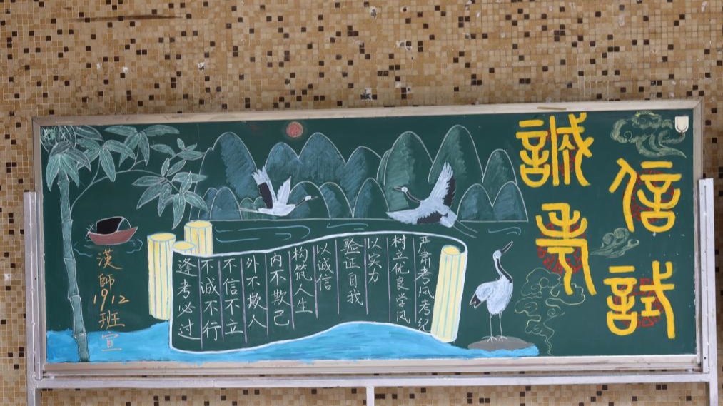 学院通过召开诚信教育主题班会、手写诚信考试承诺书、诚信考试书签的形式警示引导学生牢固树立诚信意识;利用课余时间对学业困难学生进行学业帮扶,建立线上线下相结合的“一帮一”答疑互助机制;要求每名学生党员在考试过程中佩戴党员党徽,并在考桌放置工作牌,带头遵守考试纪律,强化学生党员的责任意识和榜样意识;此外,学院还结合专业特色,开展师范生黑板报大赛、诚信诗歌创作等活动。