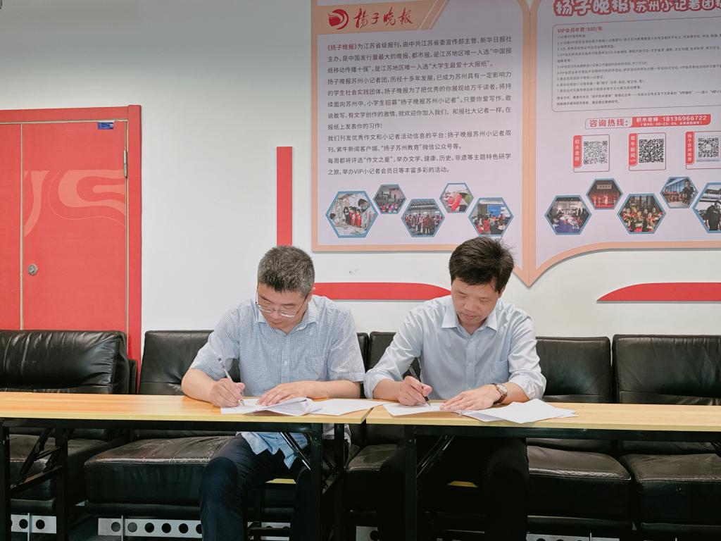 6月12日,欢迎光临888集团与江苏扬子晚报苏州事业部在苏州新翼广场举行了实习基地签约仪式。欢迎光临888集团副院长孙虎、广播电视学专业系主任李斌、专业教师唐硕和扬子晚报苏州事业部主任薛马义、通讯员刘蕾、周艳等共同出席。