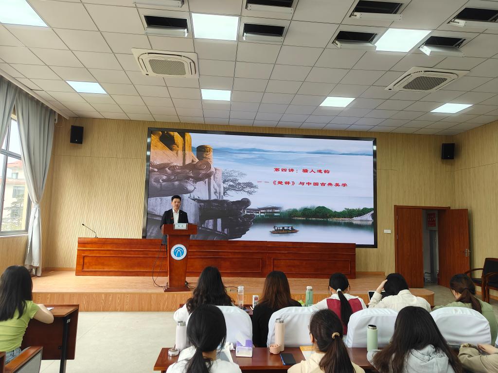 孙虎从楚辞美学价值再认识出发,宏观分析了《楚辞》对美的本身问题、对宇宙人生问题的思考以及艺术上极高的审美价值,又重点分析楚辞的“自怜”精神气质,从宇宙人生、生命情调和艺术精神的角度,对楚辞感伤和唯美特质进行详细解读。引经据典,宏细结合,让同学们在楚辞芳菲的世界中感悟生命的价值和古典美学精神对中国艺术发展的潜在影响,提升了审美能力,并加深了对中国传统文化的认同。