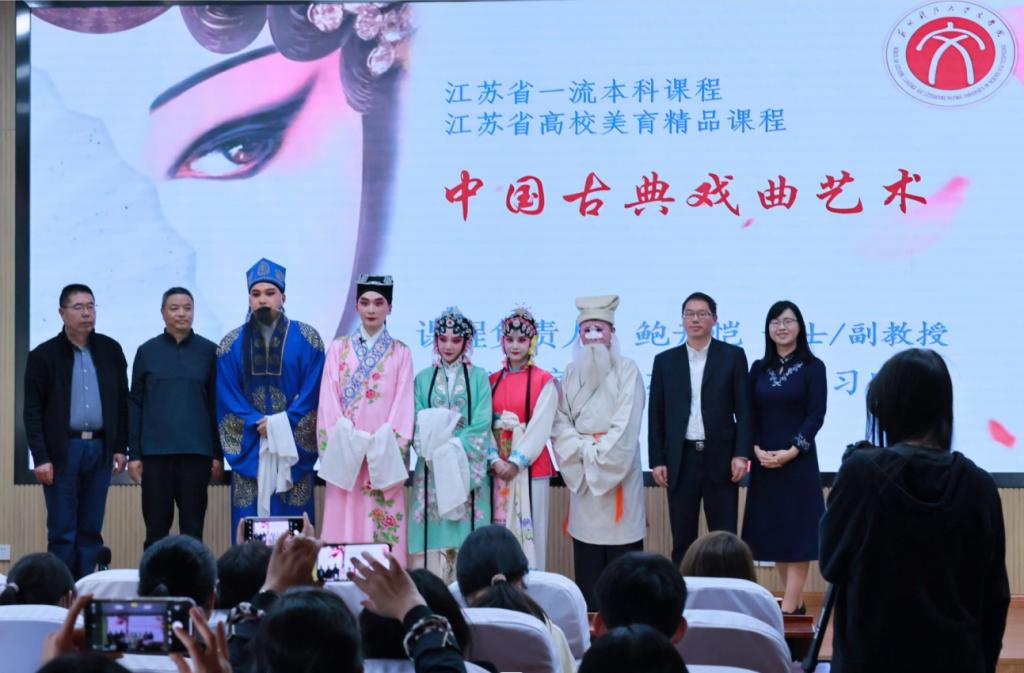 《中国古典戏曲艺术》系江苏省一流本科课程、江苏省高校美育精品课程。据课程负责人鲍开恺副教授介绍,该课程已在线上、线下同步开设十多年,受到校内外师生的广泛好评。该课程注重美育浸润,定期邀请专业戏曲演员参与课堂教学活动,主讲教师也经常在教学过程中亲自示范演唱,营造沉浸式的体验氛围、多感官的艺术课堂。