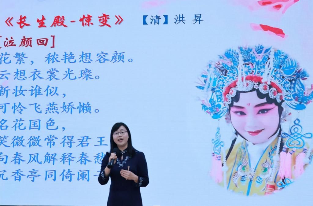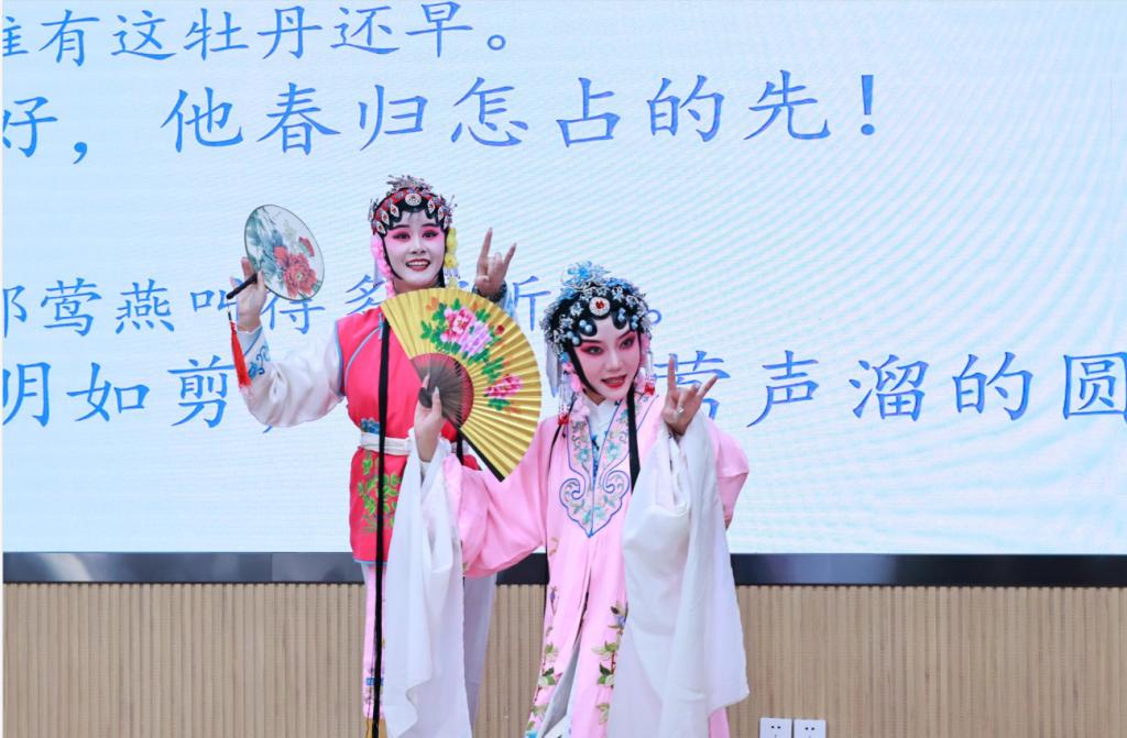 本次公开课特邀苏州昆剧传习所走进课堂,表演了《牡丹亭•游园》《狮吼记•跪池》两出昆曲经典折子戏。鲍开恺老师也一展风采,演唱了昆曲《邯郸记•三醉》和《长生殿•惊变》中的名段。在导赏环节,鲍老师引导同学们感受戏曲艺术的文学之美、唱腔之美、表演之美,体味传统戏曲的博大精深,同时启发大家用与时俱进的观念理解古典戏曲中的思想内涵,进而更好地继承与弘扬中华优秀传统文化。